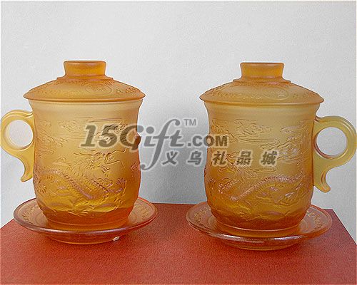 材質(zhì):琉璃,錦盒包裝,杯子:8.5*9.5CM,碟:11*1.5CM