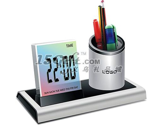 產(chǎn)品功能: *七彩萬年歷顯示 *時間顯示 *鬧鈴,溫度及星期顯示 *方形筆筒