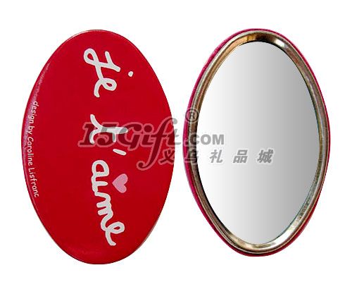 下面鏡子+中間馬口鐵+上面彩色印刷紙過光膠,橢圓造型,小巧美觀,可按照客戶要求印刷LOGO,是各企業(yè)促銷活動(dòng)之理想選擇。