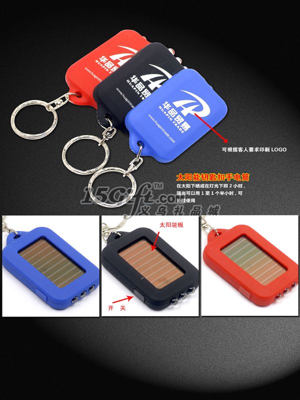 太陽(yáng)能鑰匙扣手電筒,太陽(yáng)能充電,3LED燈,開(kāi)關(guān)有邊開(kāi)和后開(kāi)兩種,單個(gè)產(chǎn)品白盒/彩包裝,方便實(shí)用