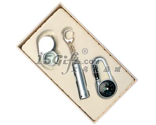 材質(zhì) 鋅合金 外觀顏色 銀色 產(chǎn)品配件說明:匙扣放大鏡(合金)+LED手電筒(鋅合金)+指南針鑰匙扣(塑料)