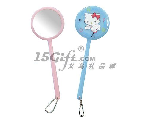 圓形長柄掛件單面鏡,塑料材質(zhì)。