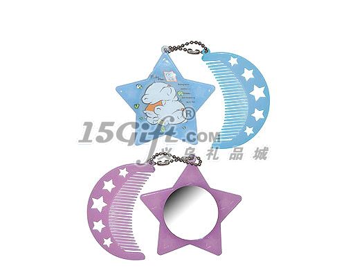 星星單面鏡,帶月亮型梳子一把,塑料材質(zhì),可做掛件。