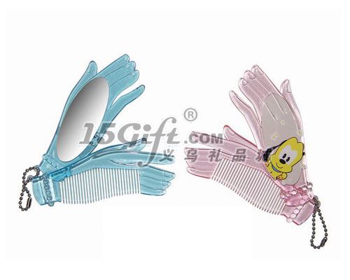 手型化妝鏡,一只手是單面鏡,一只手是梳子,塑料材質(zhì),可單掛件使用。