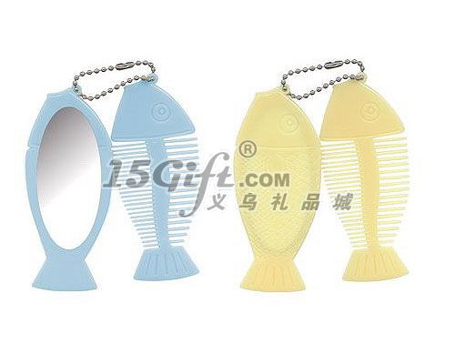 魚型掛件鏡,一面單面鏡,一把梳子,塑料材質(zhì)。