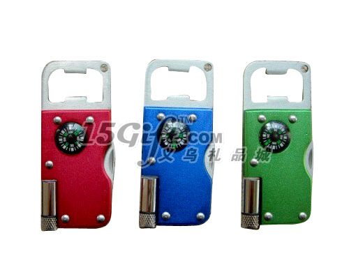 產(chǎn)品尺寸:7.8*3.3*0.9cm產(chǎn)品凈重: 40 紙盒尺寸: 32*23*28CM 裝 箱 率: 240PCS 毛/凈 重: 11/10KGS 體 積 : 0.021CBM 起訂:3000功能:開瓶器,電筒,小刀,指南針