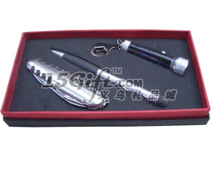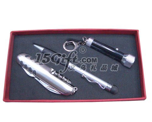 材質(zhì):碳鋼帶5開多功能刀,金屬筆,LED電筒
