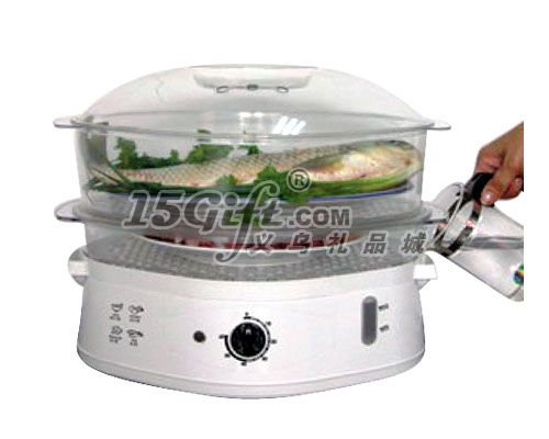 可移動(dòng)式蒸架,健康蒸氣煮食,可同時(shí)準(zhǔn)備多種菜肴具有定時(shí)響鈴功能,30秒迅速出蒸氣可直接盛菜上餐桌,方便實(shí)用*保全食物營(yíng)養(yǎng),蒸出美味和健康*遠(yuǎn)離油煙,綠色環(huán)保的烹調(diào)方式*人性化設(shè)計(jì),造型優(yōu)美、線條流暢*可快速出蒸汽,省時(shí)、省電*具有定時(shí)、免開蓋加水的功能,操 作簡(jiǎn)單方便*蒸籠與蒸盤采用分離式設(shè)計(jì),使用 清洗簡(jiǎn)便*蒸籠采用“疊中疊”式設(shè)計(jì),節(jié)省 存放空間*使用美國(guó)FDA認(rèn)證的食品級(jí)塑料, 安全衛(wèi)生