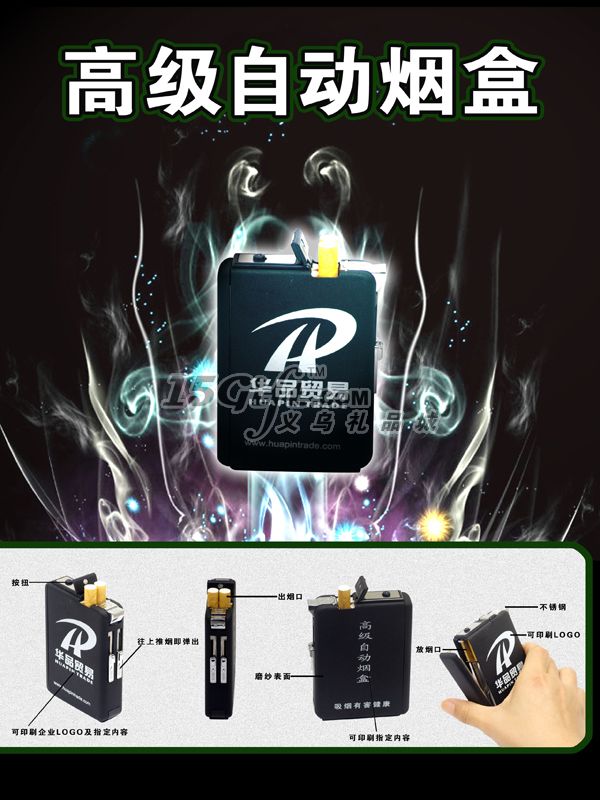 正品愛爾凱自動煙盒,機子本身為不銹鋼材質(zhì),扳手為鋅合金材質(zhì),附圖有正品與仿品的區(qū)別,可絲印各種logo,盒內(nèi)可裝10根香煙,防風(fēng)點火裝置,使您是任何時候都能夠輕松取煙、叼煙,點煙。機身為磨砂面設(shè)計,細膩,更有細膩平滑之感,超大廣告位,使您的廣告效果更佳