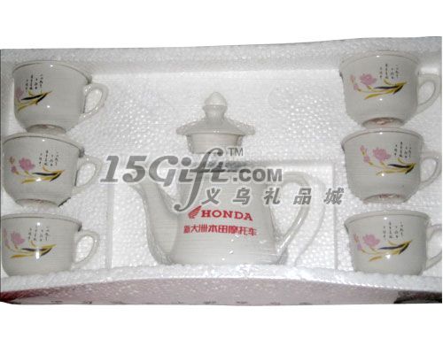 一個(gè)茶壺,六個(gè)杯子,適合工廠、商家和公司做禮品,商場做促銷品,可作各種logo