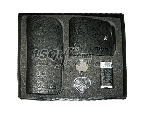 2個真皮皮夾,真皮鑰匙扣,真皮防風打火機。可以LOGO。適用于商務禮品