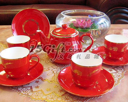 高檔紅瓷茶具,內(nèi)一個(gè)茶壺,4個(gè)茶杯和4個(gè)杯碟組成,外包裝為高檔禮盒+環(huán)保禮品袋包裝,內(nèi)附件為:收藏卡一張,產(chǎn)品說明書一本,產(chǎn)品做工精細(xì),高檔大方,歡迎前來咨詢訂購。