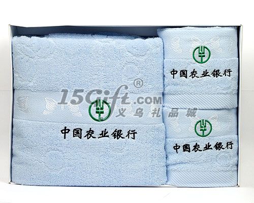 中國農(nóng)業(yè)銀行毛巾套裝,浴巾70*140cm 400g 毛巾34*76cm 100g 包裝精美,做工精細,可定制客人LOGO, 歡迎來電訂購!