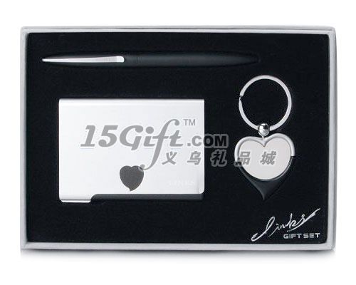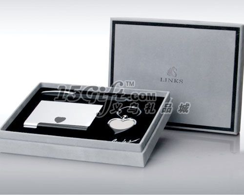 包含的產(chǎn)品:金屬名片盒;鑰匙扣;筆。