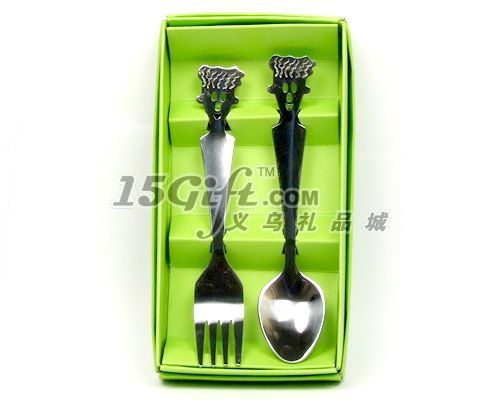 七喜公仔不銹鋼餐具,造型可愛,一個勺子,一個叉子,手柄上面廣告位大,可做logo,方便實用,是您居家旅行的必備物品