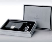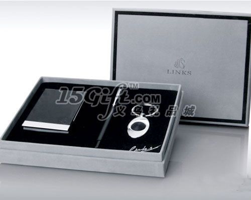 名片盒采用高檔的皮料,雙包邊處理,貼皮平整;金屬環(huán)保筆芯,精致電鍍鑰匙扣,手感極佳的黑色植絨吸塑,高檔灰色進(jìn)口植絨包裝紙的外盒。