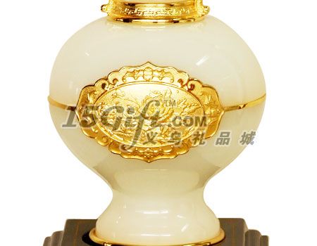 玉瓶+密度板底座,高檔錦絲外包裝盒,雍容典雅,高貴大方,精美電鍍工藝