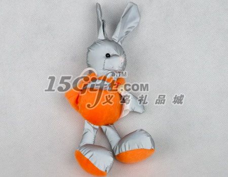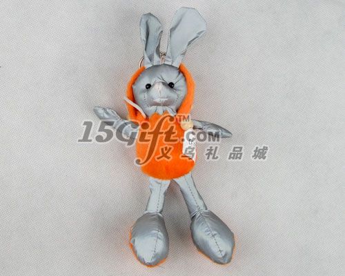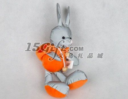 大腳兔子反光小掛件,化纖材質(zhì),外套為短毛絨,PP棉填充。