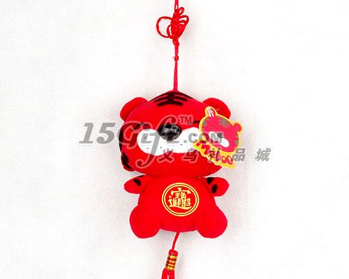 取材中國紅色拉毛絨布,填充三維PP棉,巧妙的與中國結(jié)相結(jié)合,肚子部位印刷福云圖騰,年味更濃!