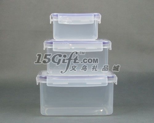 產(chǎn)品采用優(yōu)質(zhì)食品及pp料做為原材料,保鮮和密封性好,產(chǎn)品3個(gè)為一套,大的尺寸:21*15*10.5cm,中號(hào):18*12.5*9cm,小號(hào):13*10*7cm,3個(gè)裝一起套一個(gè)OPP袋,產(chǎn)品上可以按要求制作商標(biāo),歡迎前來(lái)咨詢訂購(gòu)。
