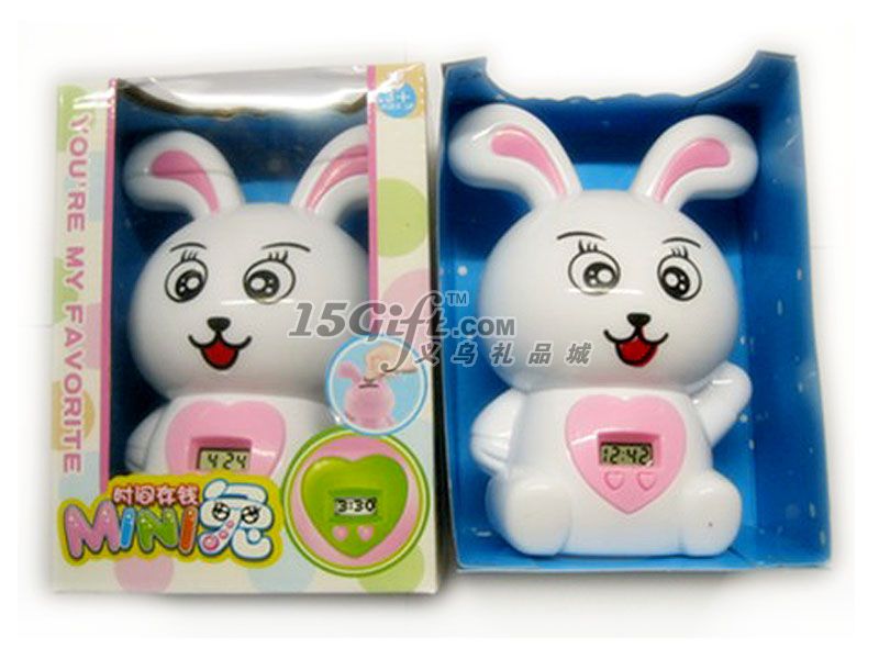 2:迷你兔儲(chǔ)蓄罐前面配有一小時(shí)鐘,造型新穎獨(dú)特,產(chǎn)品上可以按要求制作商標(biāo)!適合做銀行積分禮品、影樓禮品、電信禮品、酒店禮品等一系列促銷禮品,歡迎廣告客商前來訂購。