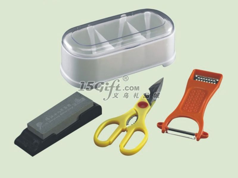 產(chǎn)品尺寸:調(diào)味盒-21.5*10*7.5CM 磨刀石-16.5*4CM 剪刀-21CM 削皮器-18.5*8.2CM ,產(chǎn)品實(shí)用方便,為您的帶來(lái)精彩的廚房生活!