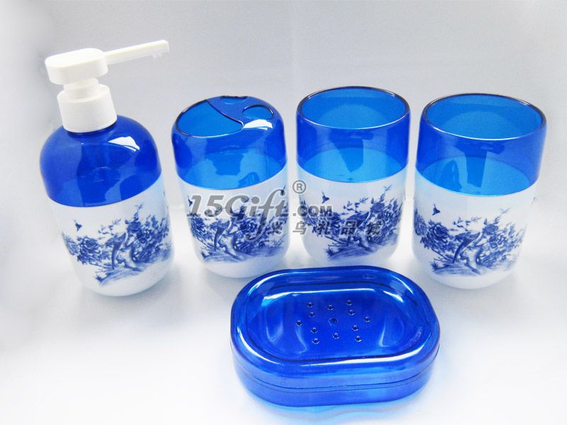 青花浴室四件套