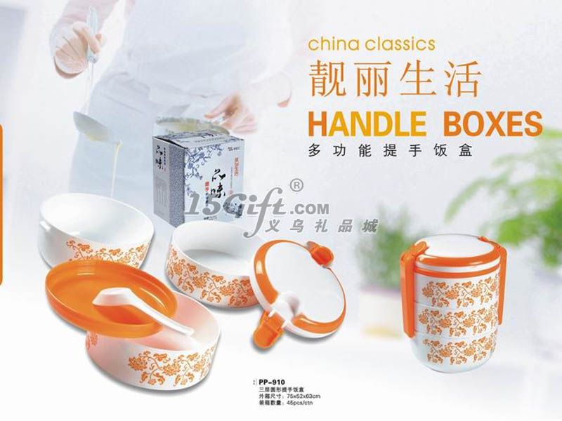 三層圓形提手飯盒