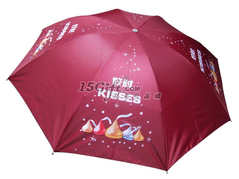 三折傘加粗槽骨架,印刷4片4色熱轉(zhuǎn)印.