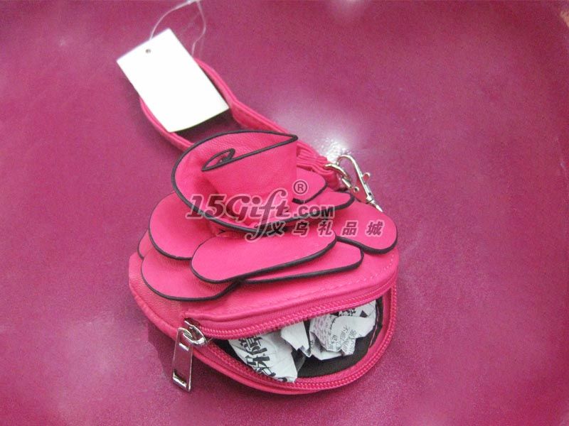 新款玫瑰花錢包,可以印刷LOGO在包包的被面,也可以做水洗標(biāo)車在邊上。歡迎客戶定制自己的廣告在上面。