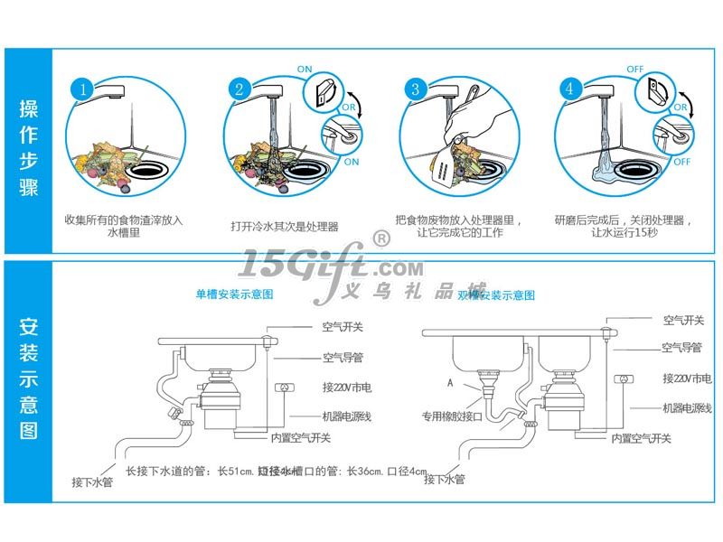 食物垃圾處理器是通過小型直流或交流電機驅動刀盤,利用離心力將粉碎腔內的食物垃圾粉碎后排入下水道。粉碎腔具有過濾作用,自動攔截食物固體顆粒;刀盤設有兩個或者四個可360度回轉的沖擊頭,沒有利刃,安全、耐用、免維護。刀盤轉速(滿負載,工作狀態(tài))采用永磁直流電機技術約2600轉/分鐘。粉碎后的顆粒直徑小于4毫米,不會堵塞排水管和下水道。食物垃圾處理器的技術原理食物垃圾處理器的核心部件是碾磨器,G-A6370這款刀盤由不銹鋼做成,壽命長,不易生銹!通過電極高速轉動處理食物垃圾,垃圾被研磨成極小的顆粒,非常容易被水沖掉,因此它一般可安裝在廚房洗滌槽的下部,圓筒形的食物垃圾處理器,可藏在櫥柜內部,連接下水管道。使用食物垃圾處理器的優(yōu)點如下1、對居民來說:①減少廚房尤其是存放垃圾桶的櫥柜內的臭味;②減少孳生蟑螂、細菌的可能;③使清理排放家庭垃圾成為一項輕松干凈的工作;④有利于保持樓梯間和居住小區(qū)的衛(wèi)生環(huán)境。2、對環(huán)衛(wèi)部門和物業(yè)管理來說:①改善環(huán)衛(wèi)作業(yè)環(huán)境; ②有效減少垃圾產量; ③減少垃圾收運過程的二次污染; ④減少垃圾收運處理的難度和成本。3、對市政和交管部門來說:①增加污水中易腐性有機物的含量,有利于污水處理廠的生化工藝;②減少垃圾車的數(shù)量和垃圾污水滴漏對路面的污染。4、對環(huán)境和資源回收來說:①減少廚余垃圾對可回收物的污染,提高資源回收率;②改善填埋場和焚燒廠的處理工況,減少滲濾液、沼氣、煙氣等污染物的排放。【社會層面反饋】居民使用處理機需要改變居民排放垃圾的習慣,但這種改變是從難到易,從復雜污臟到簡單衛(wèi)生,因此在使用方面居民的接受程度比預想的要大得多。對已安裝處理器的使用情況調查表明,居民反映良好:一、廚房里蟑螂、飛蟲少了;二、不再有廚余腐爛的氣味;三、減少清洗地板、地磚、垃圾桶的麻煩;四、廚房工作時省心、省勁;五、不用再擔心錯過每天排放垃圾的時間。