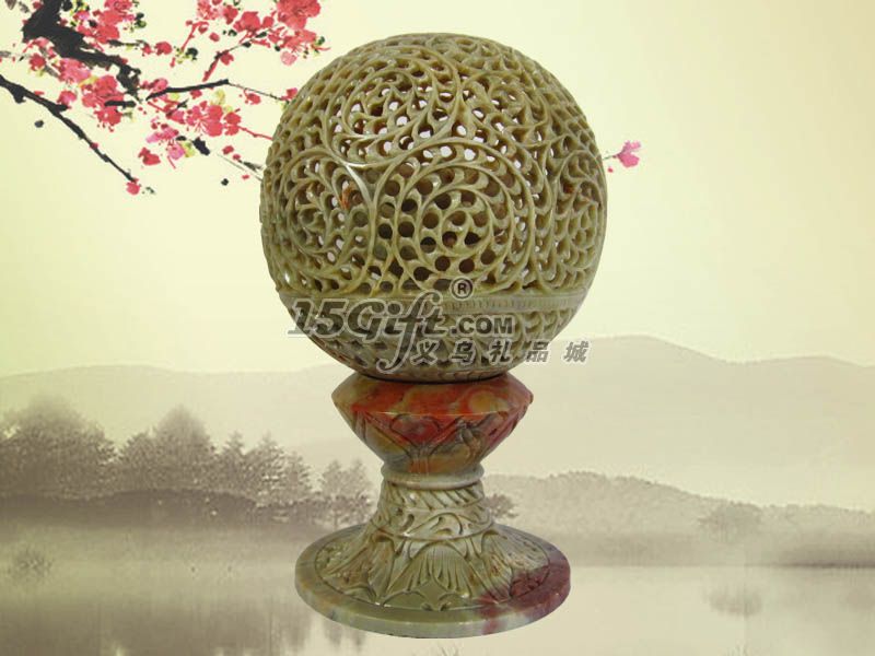 相關(guān)介紹:由天然的青田石鏤空雕刻而成。最神奇的地方在于:圓球內(nèi)鏤雕有一朵蓮花,這朵蓮花是雕刻師通過(guò)圓球的孔洞往里鏤雕出來(lái)的,且圓球毫無(wú)破損之處,顯示了雕刻師精湛的技藝。圓球和底座用一根鋼軸相連,用手撥動(dòng)圓球可以順暢地轉(zhuǎn)動(dòng),十分形象的體現(xiàn)了時(shí)來(lái)運(yùn)轉(zhuǎn)的寓意,也顯示了這款時(shí)來(lái)運(yùn)轉(zhuǎn)擺件的送禮、收藏價(jià)值。