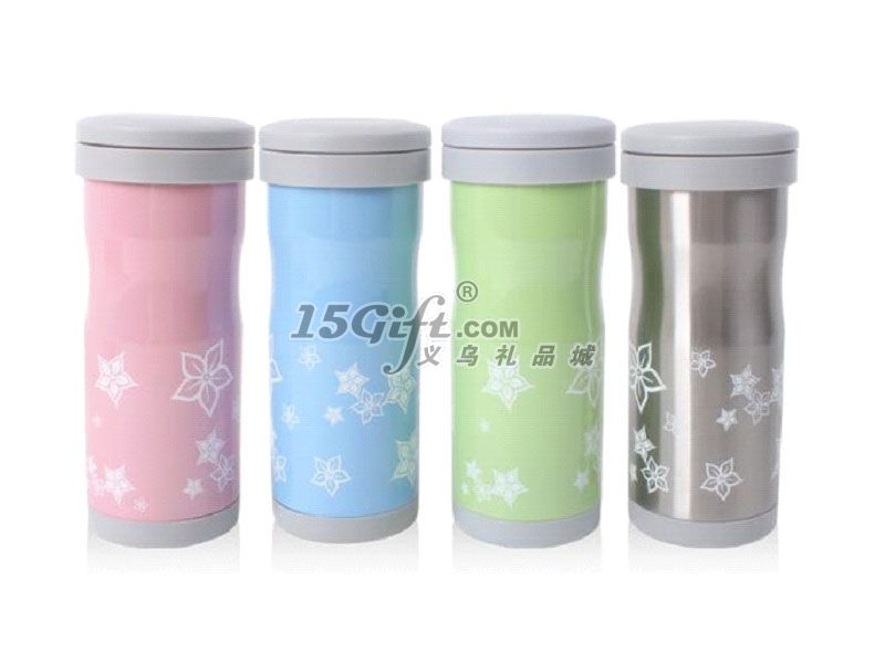 ◆。 雙層不銹鋼真空隔溫處理,保溫,保冷時(shí)間更長;◆。 雙層杯蓋,含不銹鋼濾網(wǎng),沖泡茶水,飲用更方便;◆。時(shí)尚的造型,新穎別致,色彩柔和,獨(dú)特印花設(shè)計(jì),◆。大口徑設(shè)計(jì),易于冰塊放入杯中;◆。特殊杯身設(shè)計(jì),易于拿握;◆。橡膠杯底防滑設(shè)計(jì),不劃傷桌面;