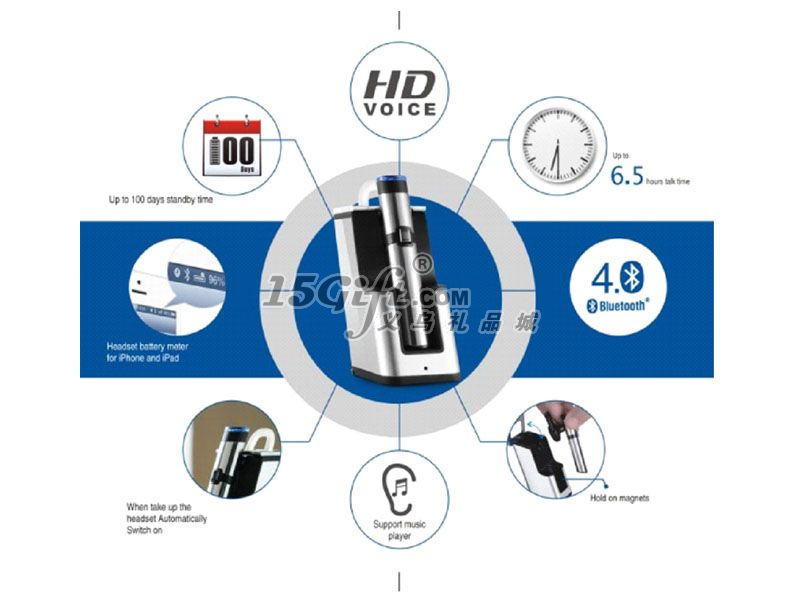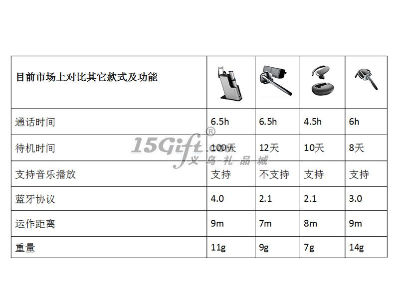 1. 7小時(shí) 通話時(shí)間2. 10米 通話距離3.100天 待機(jī)時(shí)間4.支持單聲音樂播放5.數(shù)碼信號(hào)處理降噪
