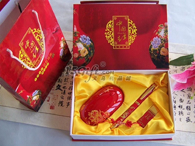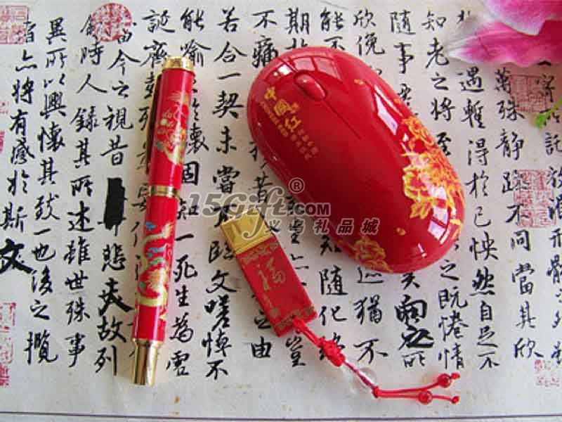 中國紅無線鼠標+中國紅陶瓷筆+中國紅4G U盤