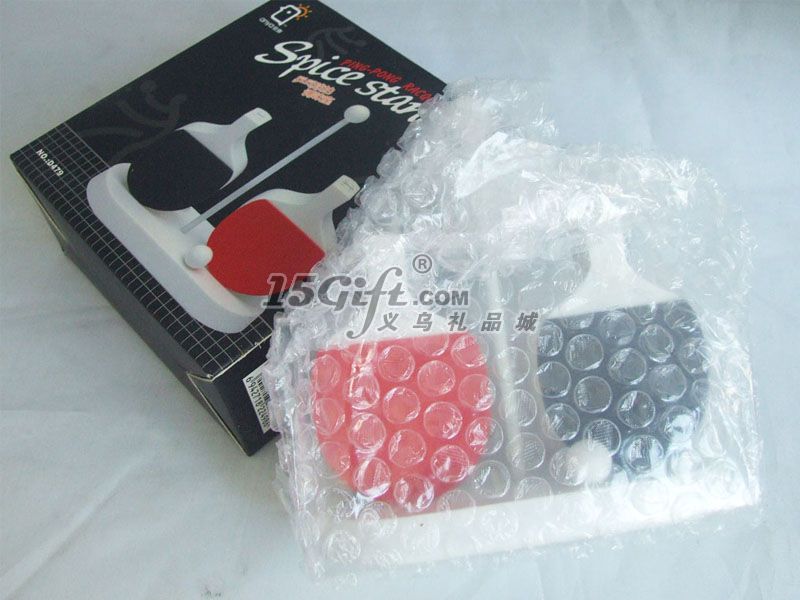 ABS乒乓球調(diào)味座采用優(yōu)質(zhì)的ABS制作而成,外觀設(shè)計(jì)為一個(gè)橢圓形白色底座,左邊是個(gè)黑色的乒乓球拍,右邊是個(gè)紅色的乒乓球拍,中間有根白色的柱子,上面有個(gè)白色的球,底座上也有一個(gè)白色的乒乓球。ABS乒乓球調(diào)味座可以當(dāng)放在廚房里放置調(diào)味品,也適合當(dāng)贈(zèng)送親友的禮品。