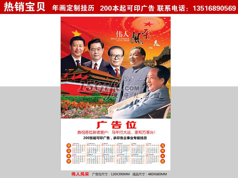 華品2014單張年畫掛歷