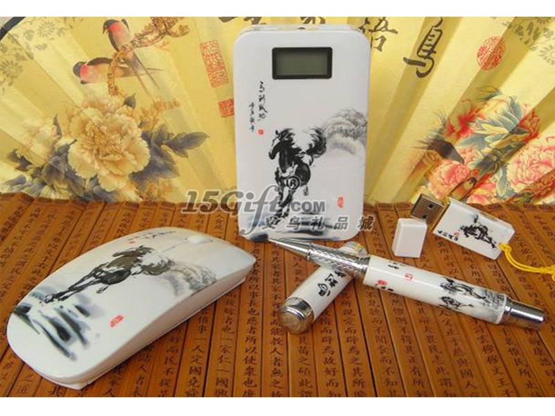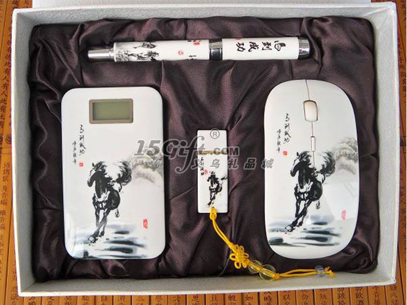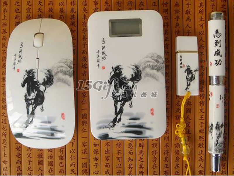 馬到成功6600MA移動(dòng)電源+無(wú)線鼠標(biāo)+陶瓷筆+U盤