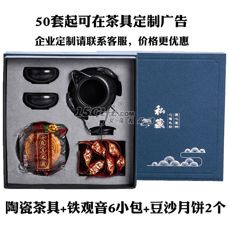 適合企業(yè)單位發(fā)中秋禮品禮物,可以在杯子和茶壺上定制企業(yè)LOGO,茶葉6小包加2個(gè)豆沙月餅。八月十五喝茶品餅賞月,寓意合家歡圓圓滿滿!是送客戶,送員工做活動(dòng)理想的中秋禮品發(fā)放。